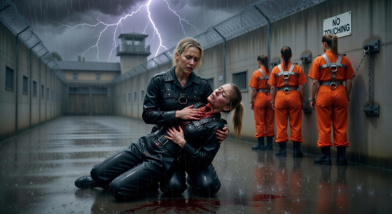 This is the system currently holding the five women to the wall in the stormy prison yard. Elena Voss personally inspects and tightens every single harness before every Storm Watch detail. She considers it her life’s work — the perfect embodiment of the lesson she learned the night Sophie died: mercy is weakness, and weakness gets people killed.