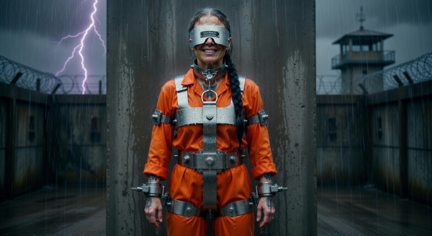 “Now you’ll remember me every time it storms.”Current Situation (2026)Katarina is the only prisoner who has experienced every single evolution of the Voss System from Mark-I to the current Mark-IX. Captain Voss personally oversees her restraints and has kept her alive for one reason only: ongoing testing and psychological retribution.She has spent more than 900 days in total darkness under the Mark-IX blindfold plate. Elena visits her cell on the 14th of every September, fits her with the complete system (torso, legs, collar, blindfold), and stands silently in front of her for the full 48-hour Storm Watch.Even blindfolded and bolted motionless to the wall, Katarina still manages to whisper the same mocking line every year when Voss approaches:“Still raining, Captain? …Good. I like the sound of your sister’s storm.”She remains the living proof that the Voss System was built not just for punishment — but for revenge.